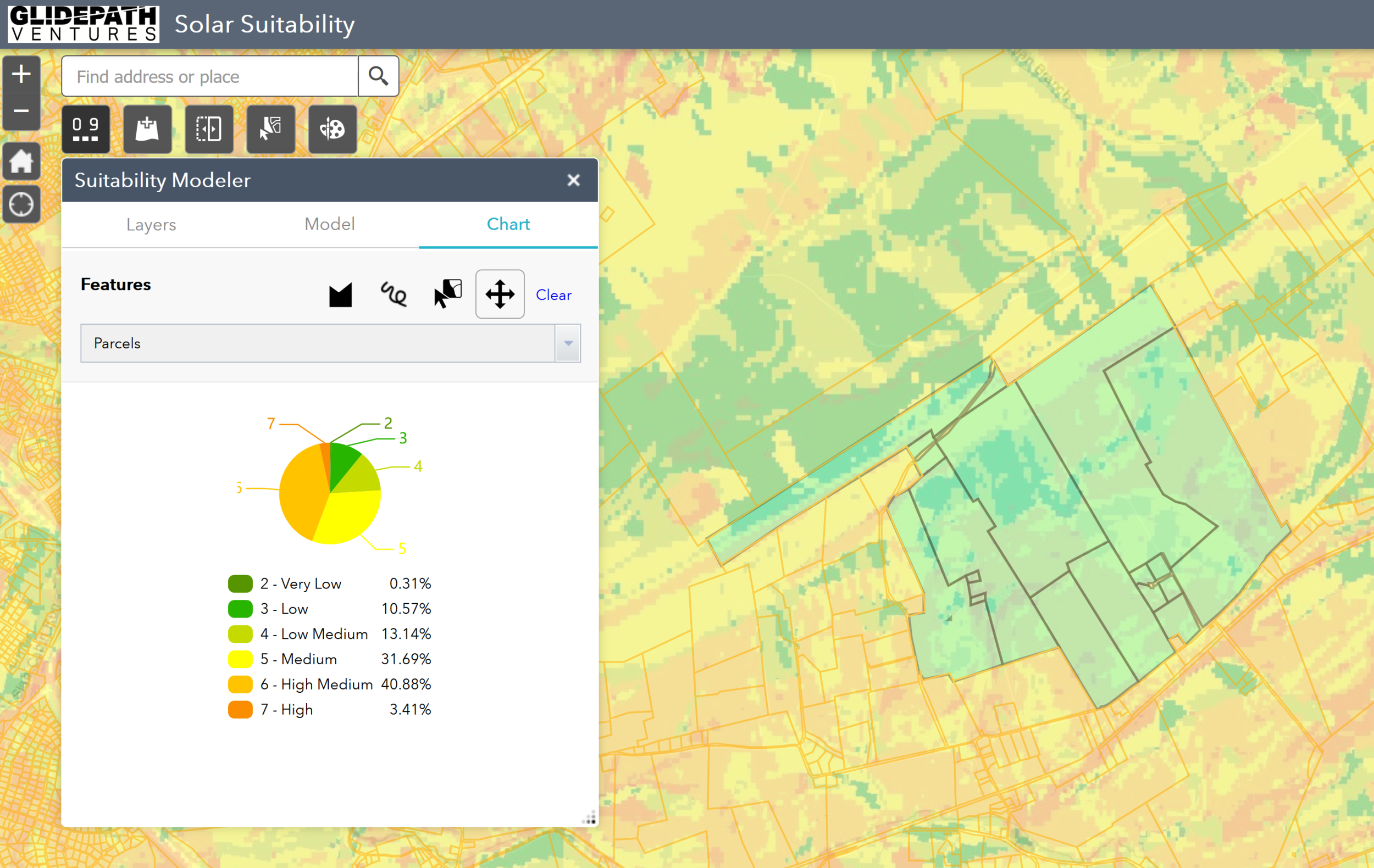 The applications we created included various tools that were designed to fit the client needs. The tool displayed below was built to show specific attributes for individual parcels that were deemed suitable. Being able to see the information prior to making an investment gave Prospect14 the upper hand when it came to finding the proper location for their solar developments.